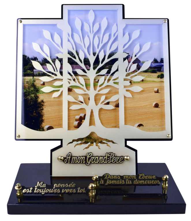 plaque altu nacré or, altu incolore imprimé et fond noir 3mm