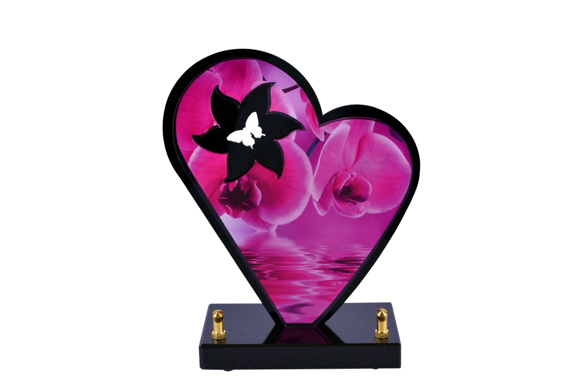 Coeur découpé PMMA 2 épaisseurs. Fond découpé Noir opaque. Décor impression numérique HD sur PMMA 6 mm. 1 INTER
