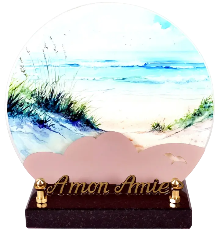1 INTER. PMMA 6mm + décor impression numérique HD + décor nuage pastel 3mm + socle granit noir sur tampons silicone